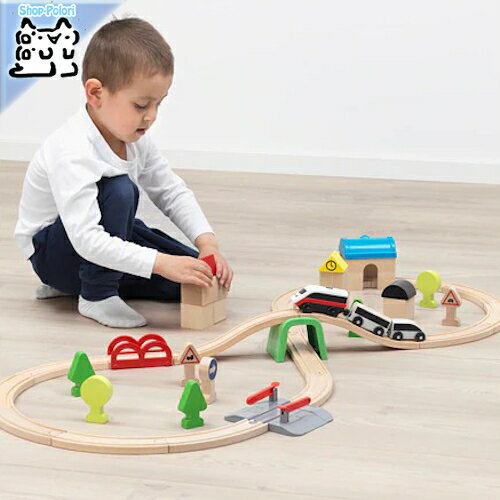 *【九州・中国・四国・関西 地方限定】IKEA 202405LILLABO リラブー 列車 レール付き 45点セット木製おもちゃ レール 複線 レールセット 線路おもちゃ 列車ギフト プレゼント 誕生日 クリスマス イケア003.300.67