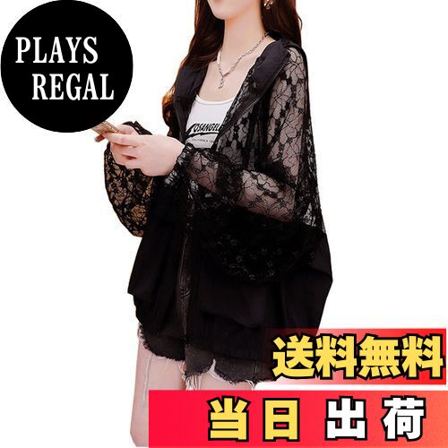 【送料無料】[7-livehouse] uvカット パーカー レディース カーディガン ラッシュガード 刺繍 長袖 日焼け止め 花柄 レース 切り替え UV対策 帽子 ポケット付き ゆったり 体型カバー 透け感 ジッパー 通勤 アウトドア 春 夏 ブラック L