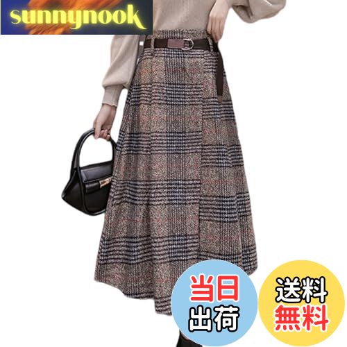 【送料無料】[7-livehouse] スカート レディース ロングスカート チェックスカート アシンメトリー フレアスカート スリット 体型カバー aラインスカート 厚手 Aライン ベルト付き ゴムウエスト 暖かい 通勤 春 秋 冬