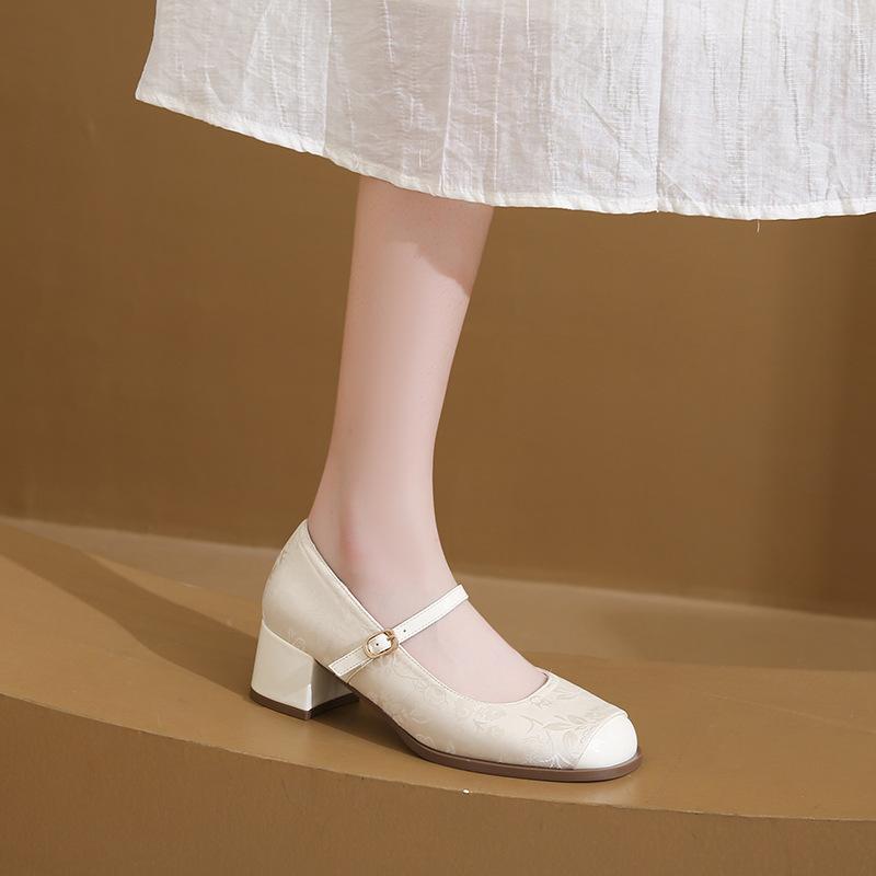 靴 レディース メリージェーンシューズ 太ヒール パンプス かわいい チャンキーヒール スクエアトゥ レトロ フラット ローヒール 歩きやすい フェミニン カジュアル