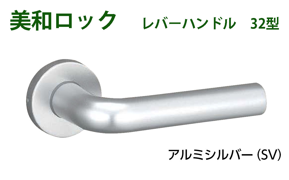 レバーハンドル錠ケースに使用できる レバーハンドル32型です。 扉厚み 33〜42mm アルミシルバー ※錠ケースは別途お買上ください