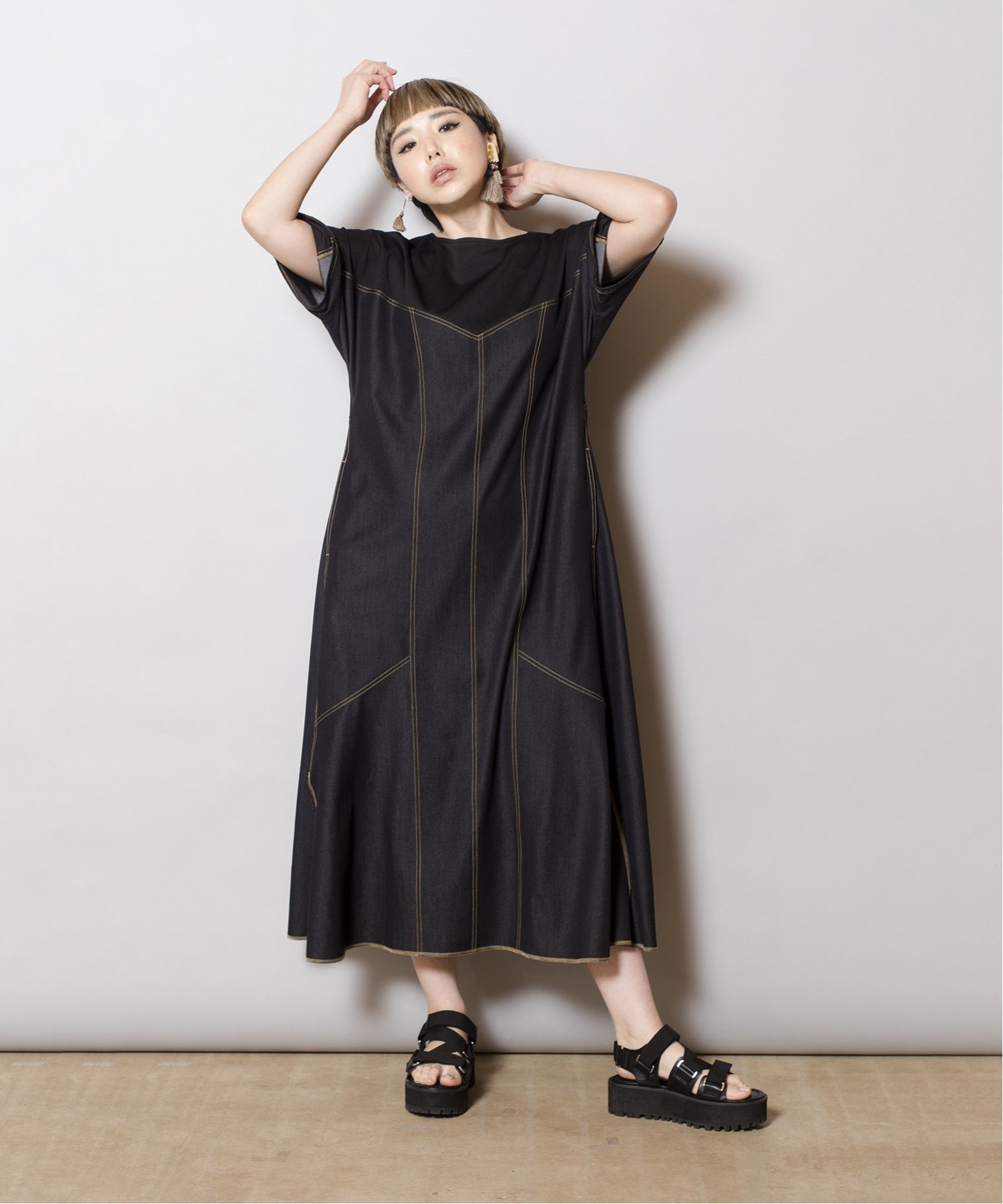 loaf テンセルデニム切替ワンピース オズモーシス ワンピース・ドレス ワンピース ブルー ブラック【送料無料】
