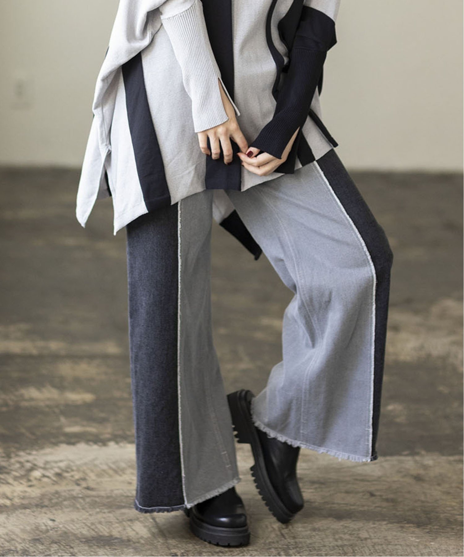 loaf 切替デニムワイドパンツ オズモーシス パンツ ジーンズ・デニムパンツ ブルー ブラック【送料無料】