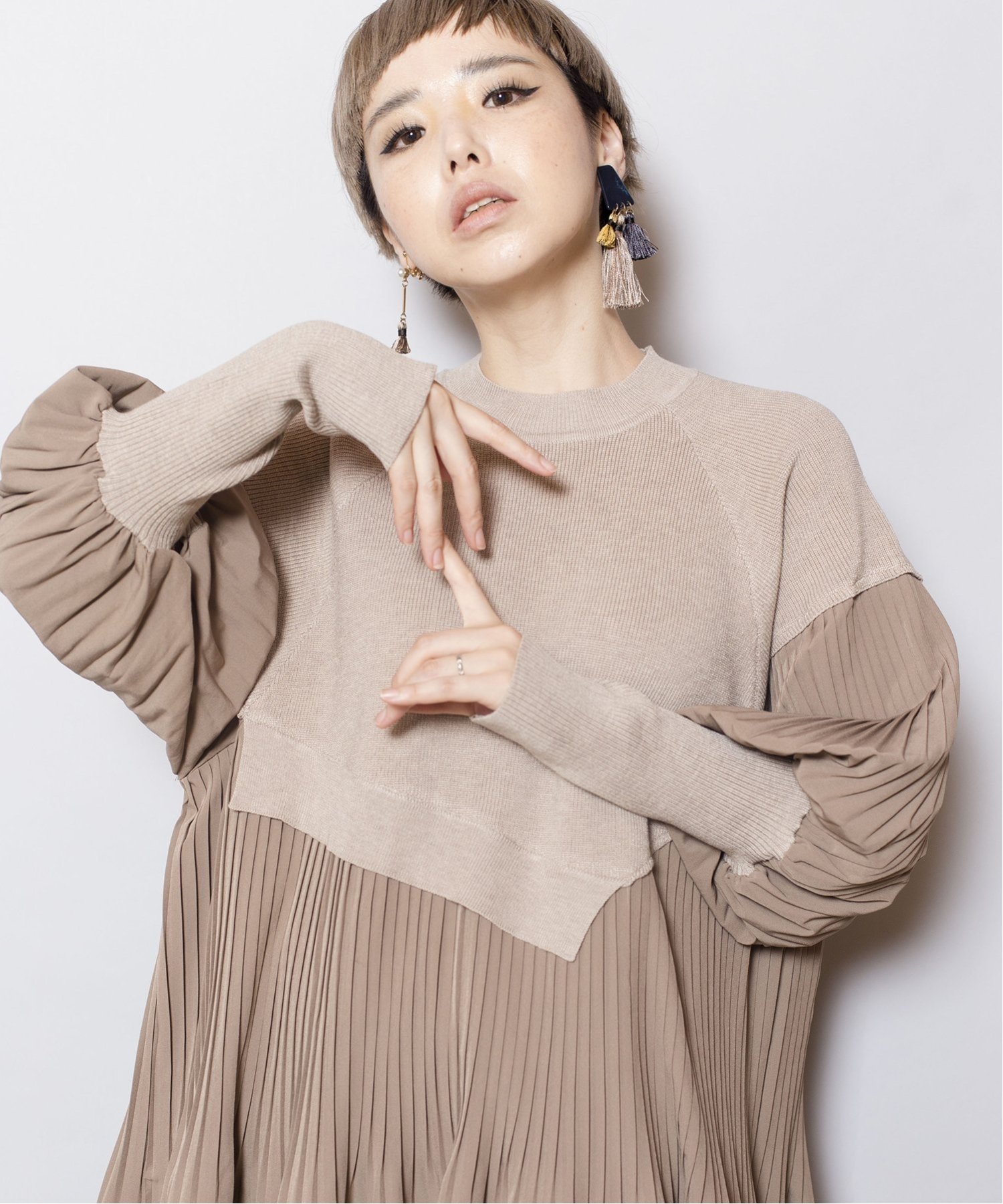 loaf ニット切替プリーツプルオーバー オズモーシス トップス カットソー・Tシャツ カーキグリーン ブラック ベージュ【送料無料】