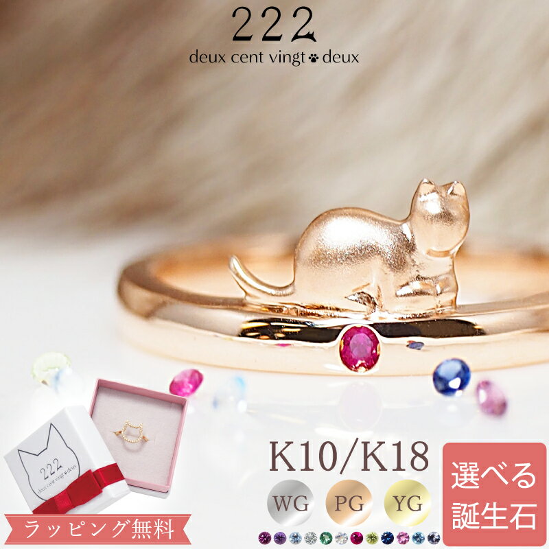 【222 deux cent vingtdeux】 誕生石 ネコ セミオーダー リング 指輪 Cat Loaf 18金 K18 18K 10金 K10 10K | バースストーン ルビー ゴールド お守り 厄除け 誕生日 記念 記念日 選べる レディース プレゼント ギフトねこ 猫 cat 金属アレルギー 安心 対応 金アレ クリスマス