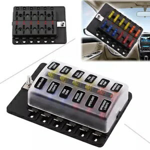 12ウェイブレードヒューズボックスブロックホルダー、端子とヒューズ付き、車、トラック、ボートRV用 12-Way Blade Fuse Box Block Holder W/ Terminals And Fuses For Car Truck Boat RV