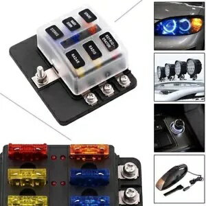 6-Way Blade Fuse Box Block Holder LED Indicator For Car Marine RVs Boats 6-Way Blade Fuse Box Block Holder LED Indicator For Car Marine RVs Boats