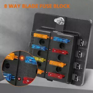 ?8ウェイブレードヒューズボックスブロックホルダー、LEDインジケーター付き、車用マリンボート32V用。 ?8-Way Blade Fuse Box Block Holder With LED Indicator For Car Marine Boat 32V