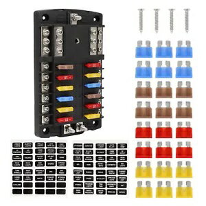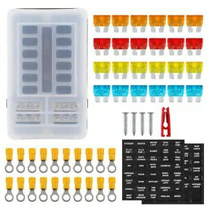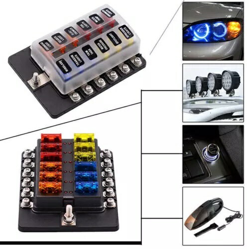 12ウェイブレードヒューズボックスブロックホルダー、端子とヒューズ付き、車、トラック、ボートRV用 12-Way Blade Fuse Box Block Holder W/ Terminals And Fuses For Car Truck Boat RV