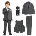 [LOLANTA]子供スーツ男の子フォーマル5点セット無地スーツキッズタキシードサスペンダー付き入園式入学式卒業式結婚式発表会七五三ダークグレー140
