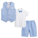 [LOLANTA]子供スーツ男の子フォーマルスーツ夏半袖シャツ半袖ズボンベスト蝶ネクタイブルー結婚式発表会七五三4点セット140