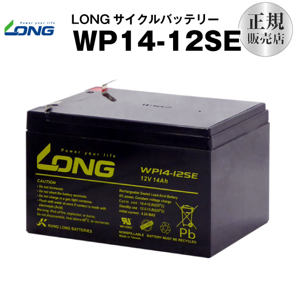※当商品は「PL保険加入製品」ですので安心してご利用いただけます。 ※届いたらすぐに使える充電済みの新品バッテリーをお届け致します。 ・完全密閉型なので液漏れやガスの放出が無く、様々な機器の電源として利用できる高性能シールドバッテリーです。 ・繰り返し充放電の耐久性に優れ、コストパフォーマンスも抜群。電動バイクの交換用バッテリーとしてなど、比較的深い充放電を頻繁に繰返す用途のバッテリーとして最適です。小型で持ち運びも楽ですので、小型電動リールの電源としても重宝します。■商品説明■ ※こちらのシールドバッテリーは高耐久タイプです。比較的深い充放電を頻繁に繰返す用途としてはこちらの高耐久タイプが適しております。 通常タイプは【残量100%から50%まで放電後に100%まで充電】の繰り返しが500回可能となっておりますが、こちらの高耐久タイプは750回の充放電を可能にしております。 ※【残量100%から50%まで放電後に100%まで充電】で使用する場合、通常タイプと比較して1.5倍の充放電が可能となります。 高耐久タイプは型番の最後にアルファベットの E が付きます。 ・LONGバッテリーはISO9001(バッテリー側面に印字)等の様々な認証を得ている高性能シールドバッテリーです。 ・完全密閉型なので液漏れやガスの放出が無く、様々な機器の電源として室内でも安全に利用できる高性能シールドバッテリーです。 ・繰り返し充放電の耐久性に優れ、コストパフォーマンスも抜群ですので、シールドバッテリーを搭載している機器の交換用バッテリーとしても最適です。 ※高耐久タイプは現在のところ、12V5Ah、12V8Ah、12V10Ah、12V12Ah、12V14Ah、12V22Ah、12V36Ah、12V50Ahの取り扱いがございます。 ※弊社のLONGバッテリーは人気商品の為、常に新鮮なバッテリーをご提供させていただくことができております。入荷サイクルはバッテリーの種類もよりますが、約3ヶ月に1回程度となっております。 ※弊社では、バッテリーを生き物と考え、在庫しているバッテリーは適温を維持できる保冷倉庫(20℃以下)で保管しておりますので、保管中の自然劣化は最小限に抑えられております。 -------------------------------------------------------------------------------- ■当バッテリーの主な利用用途■ 【繰り返しの充放電電池として】 ソーラー発電システム(独立型発電)、キャンピングカーや船舶のサブバッテリー、電動セニアカー、電動バイク、小型電動自動車、電動リール、電動フォークリフト、音響機器、移動無線 等の電池として利用可能です。 【スタンバイ電池として】 UPS(無停電電源装置)、防災・防犯システム、非常用照明設備、非常通報システム機器、消防設備 等の電池として利用可能です。 ■こんな利用方法もあります!■ 弊社の「12V系ソーラーパネル+チャージコントローラー+12Vシールドバッテリー」を組み合わせることで、まったく電源の無い場所でも12V電源を使い続けることが出来るようになります。(直射日光は必要になります) ここに、「DC12V⇒AC100Vインバーター」を追加接続することで、家庭用電と同様のAC100Vが使えるようになります。さらに利用用途は広がります。 -------------------------------------------------------------------------------- ■LONG 12V14Ah シールドバッテリー高耐久タイプ(WP14-12SE)の主な性能■ 【フルメンテナンスフリー】 充電時に発生するガスはバッテリー内部で吸収(水に還元)されるので電解液の補水は不要です。 【特殊シーリング設計】 縦横に倒した状態で充放電しても液漏れを起こさずに充放電が可能です。 【高信頼・高性能極板組成の使用】 鉛カルシウム極板の使用により自己放電が減少、容量保持特性はアップ、また過放電後の充電回復力を改善、耐過放電特性もアップしています。 【高信頼の電槽・蓋の使用】 耐衝撃性に優れたABS樹脂を使用し、安全性を向上させています。 -------------------------------------------------------------------------------- 【基本性能】 ・定格蓄電容量:12V14Ah(蓄電容量は20時間率で計算されています) ・サイズ:横幅151mm×奥行98mm×高さ95mm(端子含む高さ100mm) ・重量:約4.4Kg ・端子形状:平型端子(ファンストン端子)※平型端子セット(メス)付き(写真参照 ・認証規格: ISO 9001, ISO 14001, OHSAS 18001, UL 【詳細性能】 公称容量 20時間率 ( 0.7A放電で10.50Vまで出力) 14Ah 10時間率 ( 1.4A放電で10.50Vまで出力) 13.3Ah 5時間率 ( 2.38A放電で10.20Vまで出力) 12Ah 1C ( 14A放電で9.60Vまで出力) 9.8Ah 3C ( 42A放電で9.60Vまで出力) 7Ah 内部抵抗(1KHzで)・・・10mΩ 最大放電電流(5秒)・・・210A 動作温度範囲(適切な温度範囲) 充電 0℃ 〜 40℃ 放電 -15℃〜 50℃ 保管 -15℃〜 40℃ 気温20℃で保管時の充電保持率 1ヶ月 92%(放電率にして8%) 3ヶ月 90%(放電率にして10%) 6ヶ月 80%(放電率にして20%) 気温20℃で充電 繰り返しの充放電使用の場合 充電電圧 14.4〜15.0V 最大充電電流:4.2A スタンバイ使用の場合 定電圧充電電圧 13.50〜13.80V 【繰り返し充放電可能回数の目安】 100%放電後に満充電の繰り返し使用・・・約225回 80%放電後に満充電の
