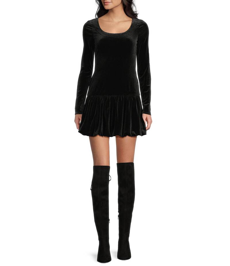ハニーアンドロージー レディース トップス ワンピース ベルベット Honey and Rosie Velvet Scoop Neck Long Sleeve Drop Waist Bubble Dress Black ブラック