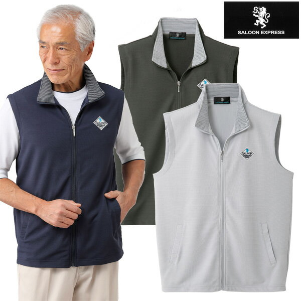 SALOON EXPRESS サルーンエクスプレス ワッフルカットソーベスト 前面ファスナー仕様 メンズ 春夏秋 40代 50代 60代 AS-0540-SAI