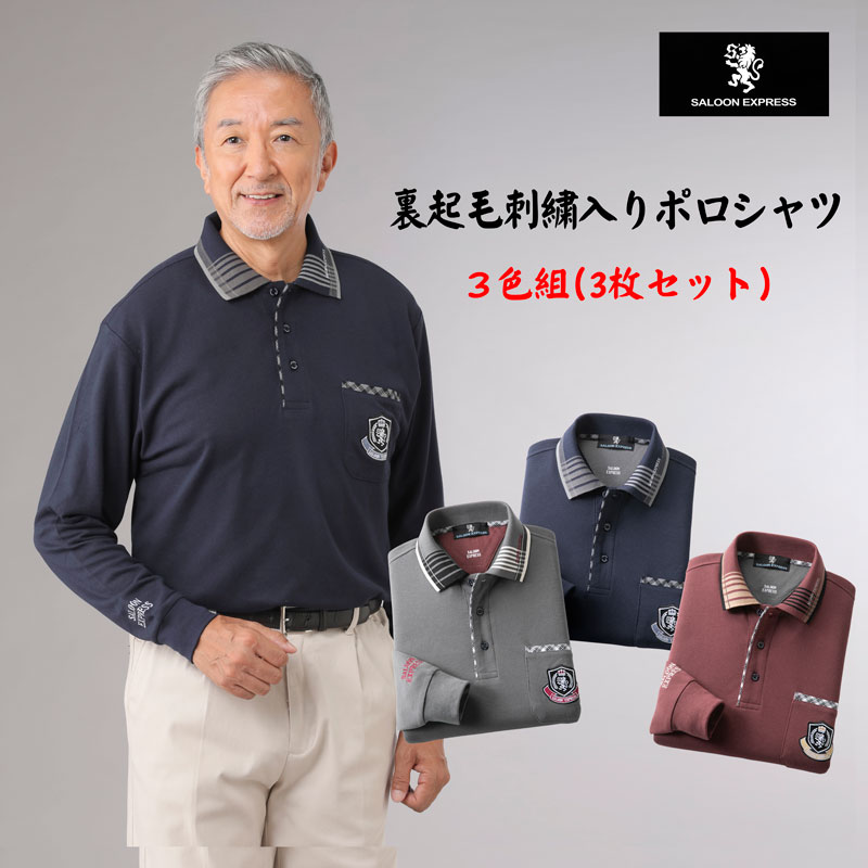 SALOON EXPRESS 裏起毛刺繍入りポロシャツ3色組/3色セット/メンズ/秋冬用 あたたかいポロシャツ 刺繍ロゴ カジュアル 誕生日プレゼント 男性 父 祖父 ギフト 暖か あったか 防寒 対策 防寒着 おしゃれ 送料無料【メーカー直送】父の日ギフト/敬老の日 ギフト