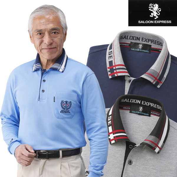 SALOON EXPRESS 刺繍入り長袖ポロシャツ 同サイズ3色組 サルーンエクスプレス 通年 40代 50代 60代 AS-280-SAI