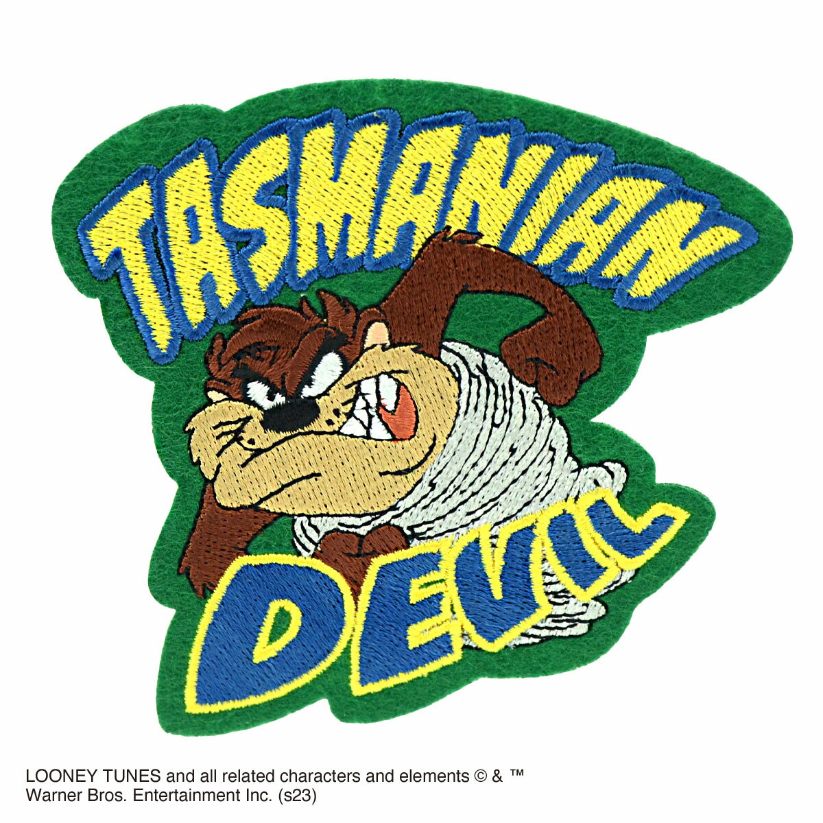 アニメ「ルーニー・テューンズ」に登場する、恐ろしいほどの食欲の持ち主タズマニアンデビル」 落ち着きがなく、竜巻のように駆け回り、そこいら中をむさぼり食う音と唸り声が響き渡ります。 好きなところにペタッと貼って気軽に楽しめるシールみたいな ワッペンが登場! アイロンをかければ布にしっかりくっつく2WAY仕様♪ 対象年齢6歳以上 【サイズ】 W8.8×H7.7cm 【素材】 エンブクロス、フェルト 【原産国】 中国
