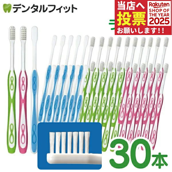 当店は楽天市場にて年間MVP賞である『 ダイエット健康ジャンル ジャンル賞』と『ROOM賞』を受賞している店舗です。 (受賞対象期間:2022年12月〜2023年11月) 多くの方に愛される歯ブラシを目指して、歯科医師と歯科衛生士の開発チームが設計した『Lover8』歯ブラシ 『Lover8(ラバーエイト)』歯ブラシは、多くの方に使いやすく、愛用される歯科用の歯ブラシを目指して、歯科医師と歯科衛生士の開発チームが設計いたしました。 ヘッドサイズは3列20タフトのコンパクトタイプ。 グリップは、滑らず歯ブラシを自由にコントロールできるように、無駄なく適材適所のラバー構造を実現。 これにより、軽量さを維持しながらも、歯ブラシの2種類の持ち方である『ペングリップ』『パームグリップ』のどちらにも安定したフィット感で、プラークコントロールが行えます。 毛のかたさは『Mふつう』を採用。 『Mふつう』の毛のかたさで『オールテーパー毛(全て先細毛)』仕様である事から、心地よい使用感を感じつつ、しっかりとした歯垢除去と歯間や歯肉ポケットへのアプローチが魅力です。 デザインのみならず、その使い心地の良さからも『愛らしい歯科用歯ブラシ』として全国の歯科医院でブラッシング指導用歯ブラシとして大変人気が高い商品です。 『愛する人たち』と一緒に『愛される歯ブラシ』【Lover8】を使って、毎日のオーラルケアをより楽しく、よりハッピーにしてみませんか? 毎日の白い歯と素敵な笑顔の為に作られた『歯科用歯ブラシ』です。 ■全長173mm ■ヘッドサイズ:8.5×20mm ■3色アソート:グリーン、ピンク、ブルー (※30本の歯ブラシの各カラー別本数については、大よそ3色がバランスよく入っていますが、各色同数ではない場合もございます。) ■毛のかたさ:Mふつう 【ご注意(免責)事項】当店では、サイト上に最新の商品情報を掲載するよう努めておりますが、メーカーの都合等により、商品規格や仕様(容量・成分・パッケージ・原産国など)が予告なく変更される場合がございます。このため、実際にお届けする商品と商品ページ上の情報表記が異なる場合がございますので、ご使用前には必ずお届けした商品の商品ラベルや注意書きをご確認ください。また、商品情報についてページ表記以外の詳細が必要な場合は、メーカー等にお問合せください。