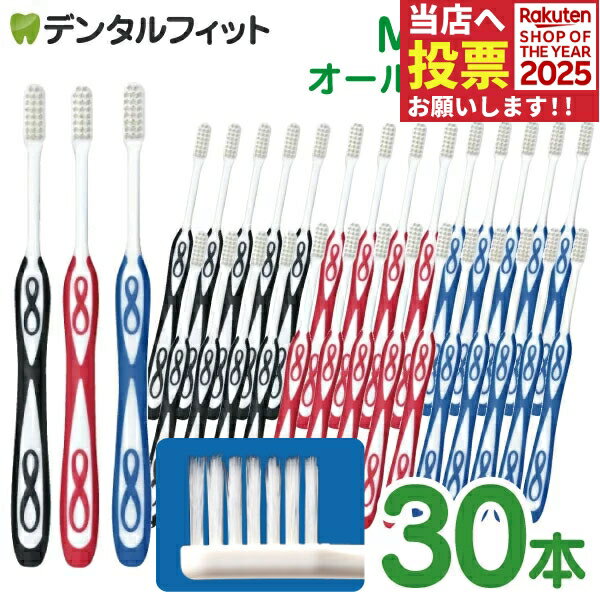 当店は楽天市場にて年間MVP賞である『 ダイエット健康ジャンル ジャンル賞』と『ROOM賞』を受賞している店舗です。 (受賞対象期間:2022年12月〜2023年11月) 多くの方に愛される歯ブラシを目指して、歯科医師と歯科衛生士の開発チームが設計した『Lover8』歯ブラシ 『Lover8(ラバーエイト)』歯ブラシは、多くの方に使いやすく、愛用される歯科用の歯ブラシを目指して、歯科医師と歯科衛生士の開発チームが設計いたしました。 ヘッドサイズは3列23タフトのレギュラータイプ。 グリップは、滑らず歯ブラシを自由にコントロールできるように、無駄なく適材適所のラバー構造を実現。 これにより、軽量さを維持しながらも、歯ブラシの2種類の持ち方である『ペングリップ』『パームグリップ』のどちらにも安定したフィット感で、プラークコントロールが行えます。 毛のかたさは『Mふつう』を採用。 『Mふつう』の毛のかたさで『オールテーパー毛(全て先細毛)』仕様である事から、心地よい使用感を感じつつ、しっかりとした歯垢除去と歯間や歯肉ポケットへのアプローチが魅力です。 デザインのみならず、その使い心地の良さからも『愛らしい歯科用歯ブラシ』として全国の歯科医院でブラッシング指導用歯ブラシとして大変人気が高い商品です。 『愛する人たち』と一緒に『愛される歯ブラシ』【Lover8】を使って、毎日のオーラルケアをより楽しく、よりハッピーにしてみませんか? 毎日の白い歯と素敵な笑顔の為に作られた『歯科用歯ブラシ』です。 ■全長180mm ■ヘッドサイズ:8.6×23mm ■3色アソート:ブラック・ブルー・レッド (※30本の歯ブラシの各カラー別本数については、大よそ3色がバランスよく入っていますが、各色同数ではない場合もございます。) ■毛のかたさ:Mふつう 【ご注意(免責)事項】当店では、サイト上に最新の商品情報を掲載するよう努めておりますが、メーカーの都合等により、商品規格や仕様(容量・成分・パッケージ・原産国など)が予告なく変更される場合がございます。このため、実際にお届けする商品と商品ページ上の情報表記が異なる場合がございますので、ご使用前には必ずお届けした商品の商品ラベルや注意書きをご確認ください。また、商品情報についてページ表記以外の詳細が必要な場合は、メーカー等にお問合せください。\歯周病予防におすすめ!/