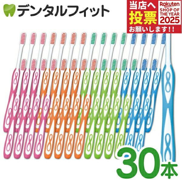 当店は楽天市場にて年間MVP賞である『 ダイエット健康ジャンル ジャンル賞』と『ROOM賞』を受賞している店舗です。 (受賞対象期間:2022年12月〜2023年11月) 歯科医院専用商品 (Ciメディカル歯ブラシ) シリーズ累計2000万本超の歯科専用 歯ブラシ!全国の歯科医院で豊富な使用実績! 多くの方に愛される歯ブラシを目指して、歯科医師と歯科衛生士の開発チームが設計した『Lover8』歯ブラシ 『Lover8(ラバーエイト)』歯ブラシは、多くの方に使いやすく、愛用される歯科用の歯ブラシを目指して、歯科医師と歯科衛生士の開発チームが設計いたしました。 ヘッドサイズは、歯科用歯ブラシとしては定番とされる3列のコンパクトタイプ。 グリップは、お子様から大人まで、滑らず歯ブラシを自由にコントロールできるように、無駄なく適材適所のラバー構造を実現。 これにより、軽量さを維持しながらも、歯ブラシの2種類の持ち方である『ペングリップ』『パームグリップ』のどちらにも安定したフィット感で、プラークコントロールが行えます。 キュートな4色のボディと同じ配色の『カラー毛』に統一したことで、従来の『Lover8歯ブラシ』より、デザイン性も進化。 毛のかたさは『MSやややわらかめ』を採用。 『Mふつう』の歯垢除去力と『Sやわらかめ』のやさしいブラッシングの中間の使い心地をイメージし、普段『Mふつう』をご使用の方にも、『Sやわらかめ』をご使用の方にも使いやすい仕様となっております。 デザインのみならず、その使い心地の良さからも『愛らしい歯科用歯ブラシ』として全国の歯科医院でのブラッシング指導用歯ブラシとして大変人気が高い商品です。 『愛する人たち』と一緒に『愛される歯ブラシ』【Lover8】を使って、毎日のオーラルケアをより楽しく、よりハッピーにしてみませんか? 毎日の白い歯と素敵な笑顔の為に作られた『歯科用歯ブラシ』です。 ■全長180mm ■ヘッドサイズ:8.6×23mm ■4色アソート:ピンク・オレンジ・グリーン・ブルー (※30本の歯ブラシの各カラー別本数については、大よそ4色がバランスよく入っていますが4色30本の為、各色同数ではございません。) ■毛のかたさ:MSやややわらかめ 【ご注意(免責)事項】当店では、サイト上に最新の商品情報を掲載するよう努めておりますが、メーカーの都合等により、商品規格や仕様(容量・成分・パッケージ・原産国など)が予告なく変更される場合がございます。このため、実際にお届けする商品と商品ページ上の情報表記が異なる場合がございますので、ご使用前には必ずお届けした商品の商品ラベルや注意書きをご確認ください。また、商品情報についてページ表記以外の詳細が必要な場合は、メーカー等にお問合せください。