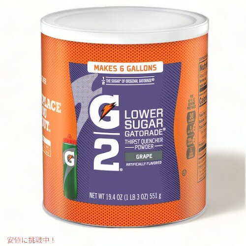 Gatorade ゲータレード スポーツドリンク 濃縮パウダー 糖分1/2 61回分 (グレープ) Lower Sugar Thirst Quencher Powder Grape 19.4oz
