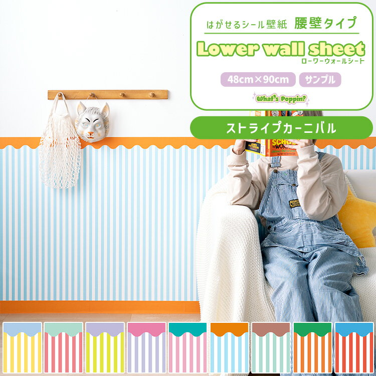 『今ならスムーサー付き』はがせる シール 壁紙 腰壁 Lower wall sheet ローワーウォールシート 約48cm×90cm サンプル ストライプカーニバル What's poppin? リメイクシート 賃貸 簡単 おしゃれ DIY キズ防止 カラフル ポップ ストライプ