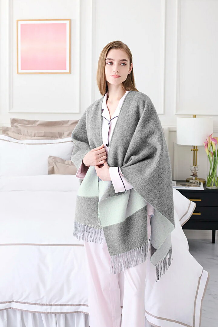 ラムウールポンチョ ウール100% フリー 暖かい 羽織り アウター リバーシブル ホワイト グレー ギフト ホテルライクインテリア