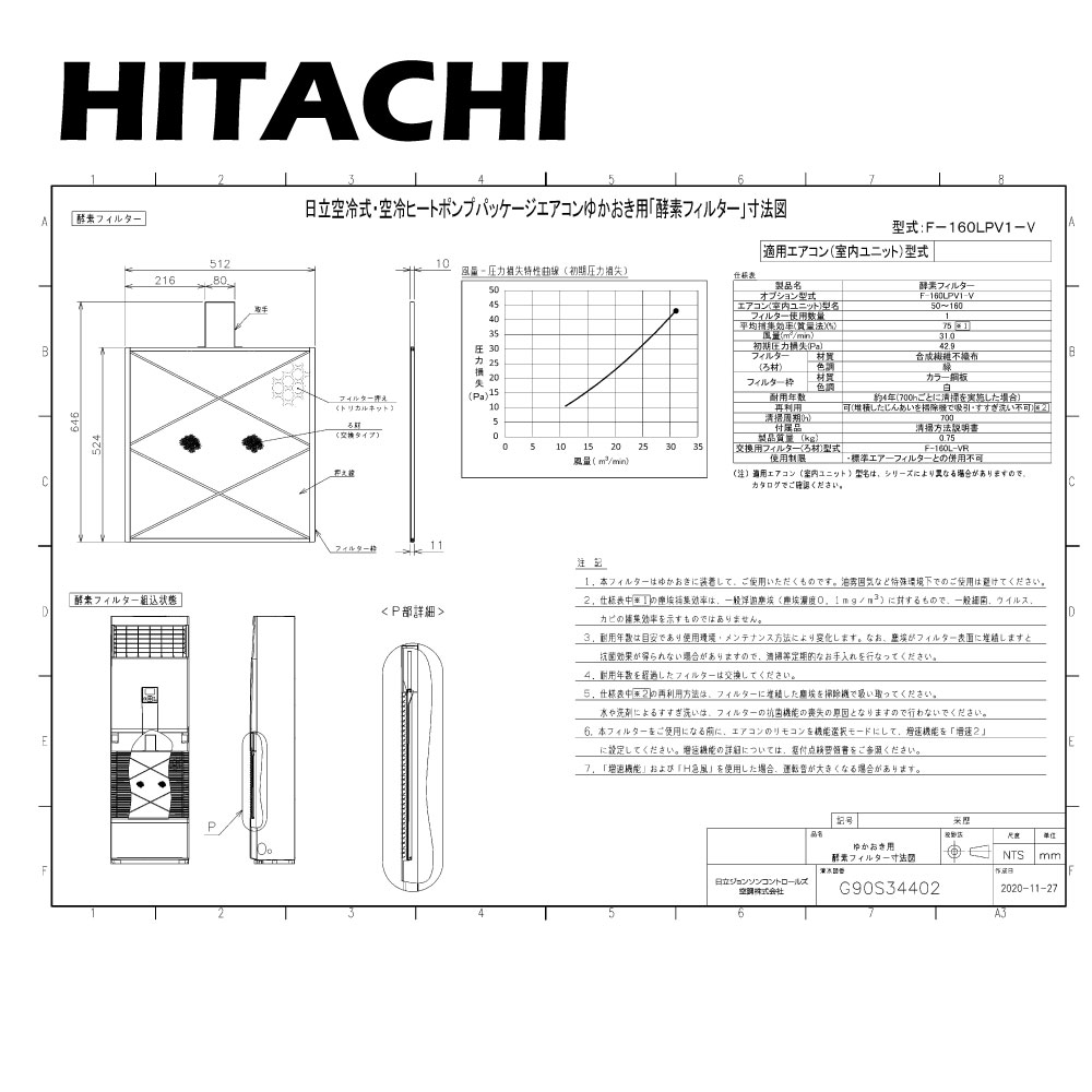 日立 F-160LPV2 (床置 RPV-GP50K~160K用) : エアーフィルター 防カビ交換用∴