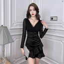 レディース サロン 秋冬 魅惑的 Vネック フリルドレス ウエスト スリム 足 マッサージ 美容 作業着 ショート スカート