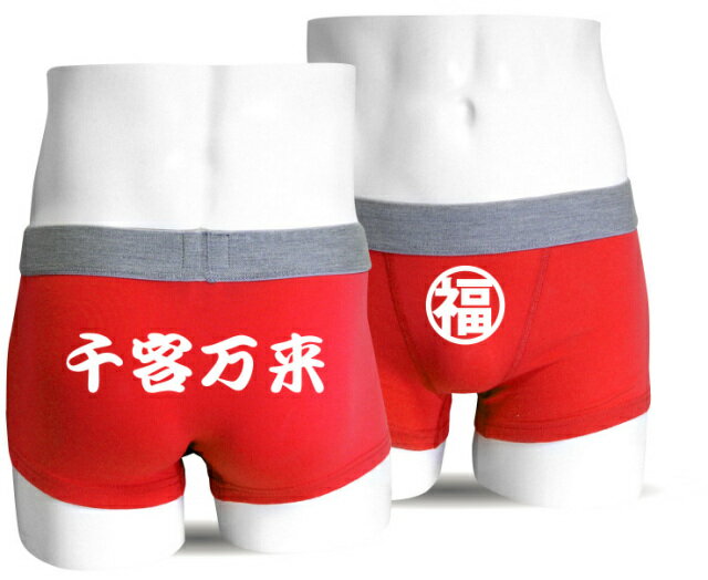 開業祝い おもしろ パンツ ( ボクサーパンツ )( 千客万来 ) 商売繁盛 プレゼント 幸運 ラッキー 運気 上昇 開運 ボクサーブリーフ 赤い下着 赤いパンツ しゃれもん
