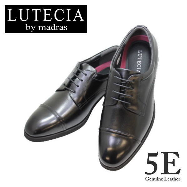 madras マドラス LUTECIA ルーテシア LU7804 黒 5E 幅広 甲高 ストレートチップ 冠婚葬祭革靴 ビジネスシューズ メンズ用 本革(レザー)柔らか ソフト 皮素材 25cm 25.5cm 26cm 26.5cm 27cm幅調整しやすい外バネ レースアップシューズ