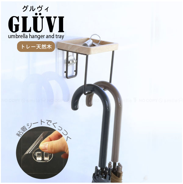 グルヴィ 吸着傘ハンガー&トレー ERSS-UH / 傘 ハンガー トレー 天然木 玄関 小物 鍵 サングラス 印鑑 収納 整理整頓 粘着シート ディスプレイ