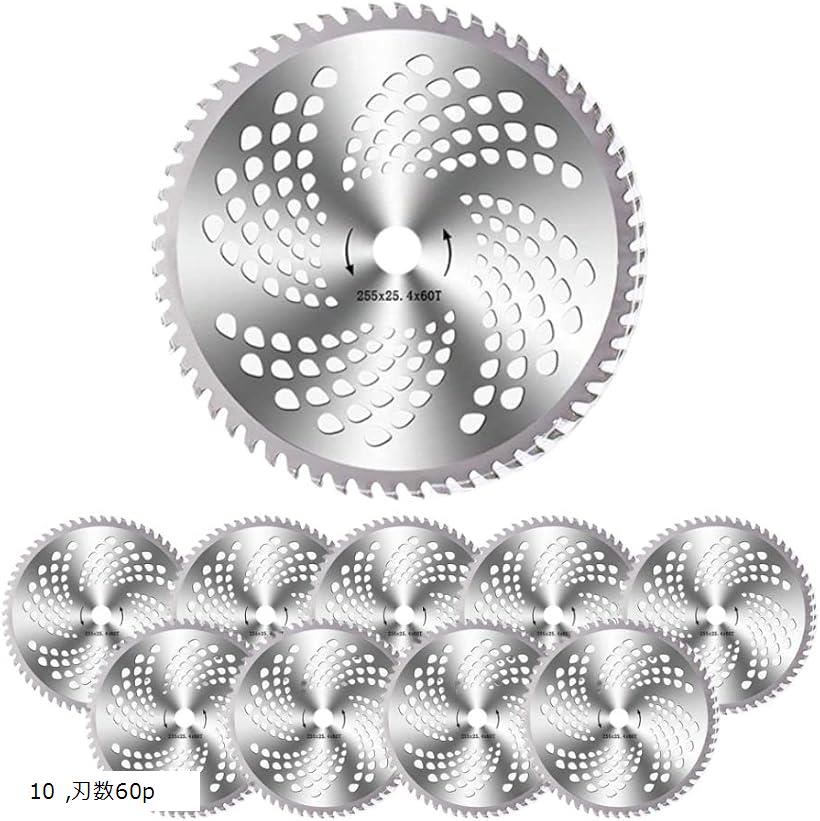 互換品草刈り機 チップソー 草刈り機の刃 替え刃 スチール 255mm 交換 用品 10枚セット(刃数60p 10枚セット)