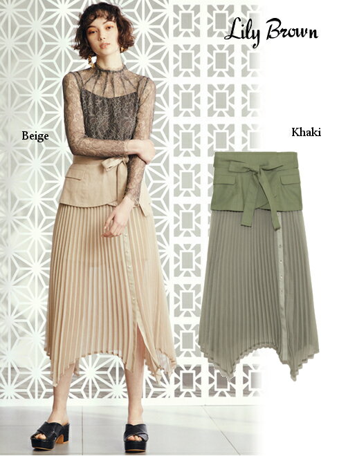 2020春夏. Lily Brown (リリーブラウン)プリーツシアースカート透け感のあるプリーツスカートに、ペプラムベルト、インナーのショートパンツがセットになった、立体感のあるアイテムをつくりました。すべてレイヤードしても、それぞれ単品としてお手持ちのアイテムと合わせても、何通りもの着こなしが楽しめます。■カラー:KKI、BEG■サイズ:0(S),1(M)■【0】着丈:76cm(CB) ウエスト64/74cm ヒップ95cm 【1】着丈:78cm (CB) ウエスト67/77cm ヒップ98cm