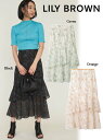 2023春夏. Lily Brown (リリーブラウン)刺繍マーメイドスカート動きのある2段フリルで華やかに仕上げたマーメイドスカート。透け感のあるオーガンジーに上品な手描き風の花柄を全面に刺繍しました。ウエストは別布パイピング仕様で引き締め、トップスをインしてもサマになるようなデザインに。バックウエストはゴム仕様でフィット感を出し、穿き心地の良さも考慮しています。■カラー:GRN、ORG、BLK■サイズ:0(S)■素材:ポリエステル100%/刺繍糸:上糸:ポリエステル100%/下糸:ポリエステル100%/(別布)パイピング部分:ポリエステル100%/裏地:ポリエステル95%、ポリウレタン5%■0(S):着丈82cm、ウエスト72cm、ヒップ91cm、裾幅108.5cm