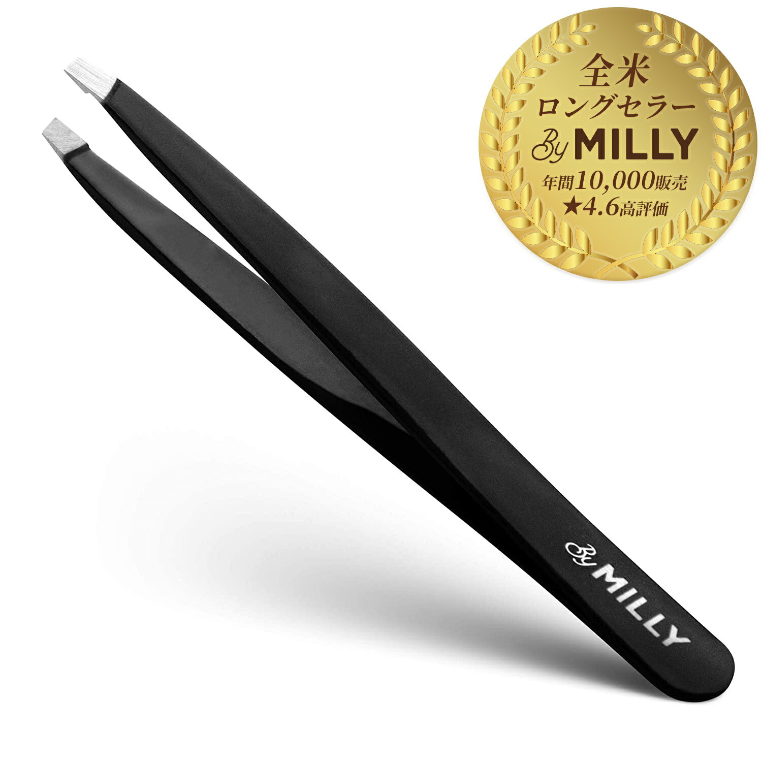 【送料無料・先平斜めブラック】全米ロングセラー 毛抜き ByMilly 斜め角度で精密 100%ステンレス製 プロ職人仕様 眉毛 ムダ毛 ピンセット ノンストレス脱毛 メンズ レディース 兼用 (国内正規品)