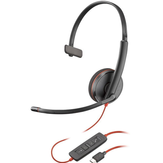 日本HP 片耳ヘッドセット Poly Blackwire 3210 USB-C +USB-A 変換アダプタ付 片耳 有線モデル ノイズキャンセリングマイク搭載 8X214AA 【NE直】【コールセンター】【テレワーク応援】