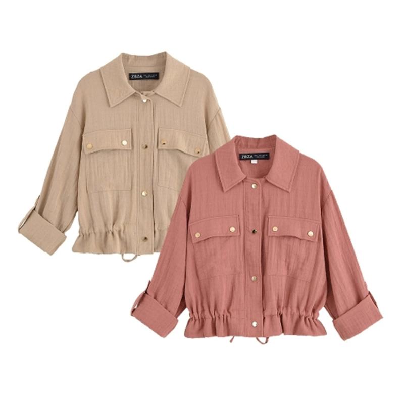 ジャケット レディース ファッション カジュアル ポリエステル 長袖 襟付き ショート丈 カーキ色 レッド 日韓スタイル