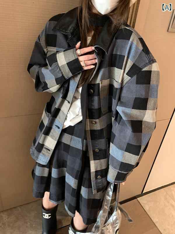 チェック柄 シャツ レディース Laazy レトロ チェック 柄 デニムジャケット レディース レザー 大きいサイズ カジュアル デニム トップ