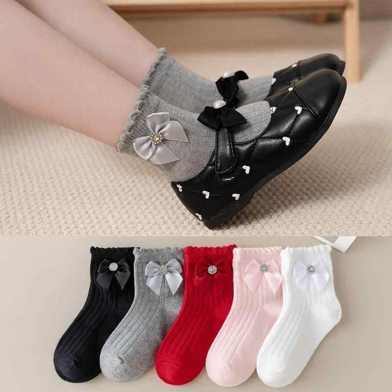 ・カテゴリ: キッズソックス・性別: 女の子・機能: 通気性・丈: ミドル丈・厚さ: 中厚・柄: ストライプ、無地・デザイン要素: レース、可愛い、フリル、リボン、UKスタイル、プリンセス、トレンド・主な素材: 綿65%・カラー展開: 5色アソート・サイズ展開: S(1-3歳), M(3-5歳), L(6-8歳)