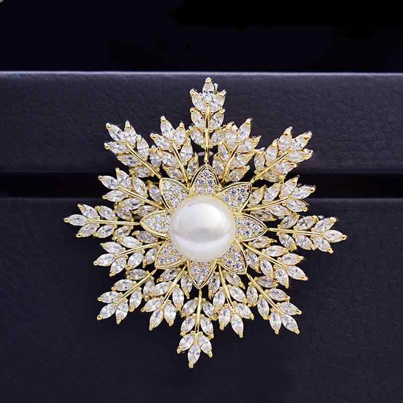 ブローチ レディース 雪の結晶 パール ジルコニア シンプル 上品 デザイン 精巧 微細埋め込み 多用途 コート スーツ ファッション アクセサリー オフィス 通勤 ゴールド シルバー