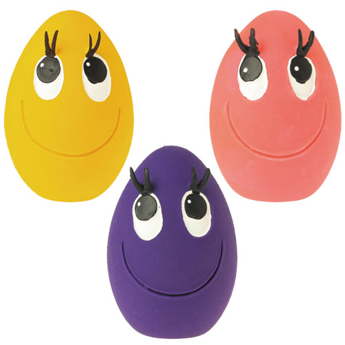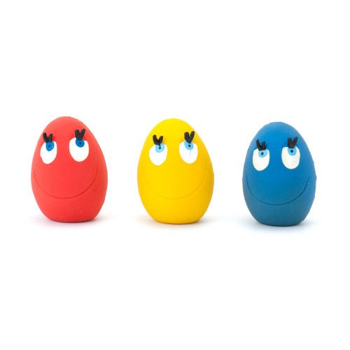 ・LANCO(ランコ)社のたまごちゃんシリーズTOY。 ・スペイン特有のカラフルな色使いと可愛いキャラクターは世界39ヵ国以上のオーナーとペット達に愛され大人気です。 ・一つ一つ手作業でペイントを行い顔の表情などを描きます。その顔はクリクリとしたおめ目と長いまつげが特徴です。 ・ラバーはふにゃふにゃと柔らかいソフトラバータイプ。パピーやシニアでも噛みやすく耳に優しい静かな鳴き笛で、うるさすぎず程よい音がします。 ■サイズ:約W6.5×D5.5×H6.5cm ■材質:天然ゴム(香りなし) 【注意事項】 ※飼い主様の目の届く範囲で使用し、破損個所が見つかった場合はただちに使用を中止してください。 ※こちらの商品は手作りで製造されているため生産ロットによって色むらやゴムの厚さ、表情などが微妙に違ったりします。 ※ページ上に掲載されていないカラーもございます。予めご了承下さい。 フェレットワールド40ヵ国以上で愛される"たまご"ちゃん♪ つぶらな瞳とまつげが可愛タマゴのおもちゃ!! コロコロとしたタマゴ型でさわり心地もサラサラ天然ゴム製おもちゃです。 LANCOは40カ国以上で愛されています。 商品紹介 LANCO(ランコ)の「タマゴ デビル」は世界中で安全性が認められたLANCO(ランコ)社のドッグトイシリーズです。 製造はスペインのLANCO(ランコ)社。化学物質を一切使用せず、天然ゴム100%と食用染料が使用されたペットにやさしいおもちゃです。 昔ながらの製法でひとつひとつ丁寧に作られていますので、その表情もさまざまです。 中に笛が入っており、犬やフェレットが噛んだり押したりすると、"ピー”と 耳に優しい音が鳴るので、音に敏感な子にも気に入ってもらえると思います。