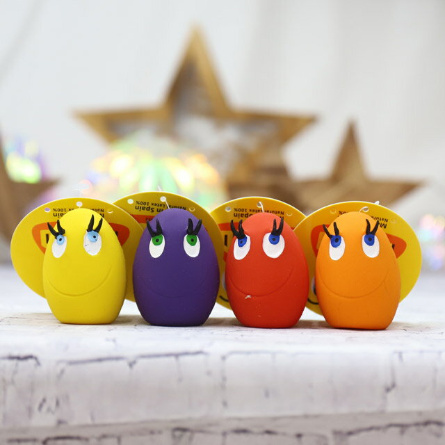 ・LANCO(ランコ)社のたまごちゃんシリーズTOY。 ・スペイン特有のカラフルな色使いと可愛いキャラクターは世界39ヵ国以上のオーナーとペット達に愛され大人気です。 ・一つ一つ手作業でペイントを行い顔の表情などを描きます。その顔はクリクリとしたおめ目と長いまつげが特徴です。 ・ラバーはふにゃふにゃと柔らかいソフトラバータイプ。パピーやシニアでも噛みやすく耳に優しい静かな鳴き笛で、うるさすぎず程よい音がします。 ・クリスマスカラーがとってもキュートな、数量限定のタマゴちゃん♪ ■サイズ:約W5×D5.5×H7.9cm ■材質:天然ゴム(香りなし) 【注意事項】 ※飼い主様の目の届く範囲で使用し、破損個所が見つかった場合はただちに使用を中止してください。 ※こちらの商品は手作りで製造されているため生産ロットによって色むらやゴムの厚さ、表情などが微妙に違ったりします。 ※アソート入荷のためタイミングによってご希望のカラーがお出しできない場合がございます。 ※数量限定の為、無くなり次第終売となります。40ヵ国以上で愛される"たまご"ちゃん♪ つぶらな瞳とまつげが可愛タマゴのおもちゃ!! コロコロとしたタマゴ型でさわり心地もサラサラ天然ゴム製おもちゃです。 LANCOは40カ国以上で愛されています。 ペットが扱いやすい、手の平サイズの可愛いおもちゃ♪ やわか〜いソフトラバータイプ。押すとピーピー鳴る鳴り笛入り♪ クリスマスカラーがキュートなタマゴちゃん♪