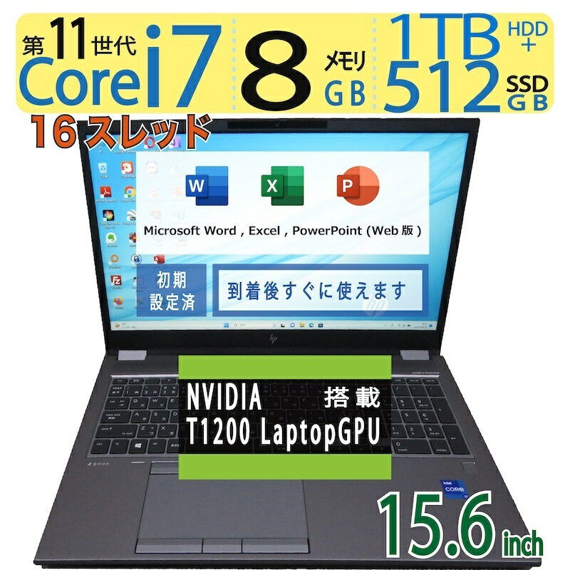 【ワークステーション】◆ HP ZBook Fury 15.6inch G8 / 15.6型◆ Core i7-11800H [16スレッド] /高速 512GB SSD+ 1TB HDD / メモリ 8GB◆ NVIDIA T1200 Laptop GPU 搭載 ◆ win11 / ms Office web到着後すぐに使える 中古良品 win11対応 中古PC 中古ノート