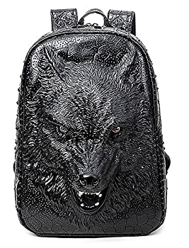 【中古】【輸入品・未使用】Antainaブラック3dウルフヘッドEmbossedバックパックリベットパンクPU Laptopスクールバッグ