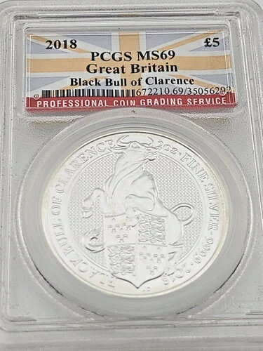 イギリス 2018年 5ポンド PCGS MS-69 ブラックブル・オブ・クラレンス 2オンス .9999 シルバー