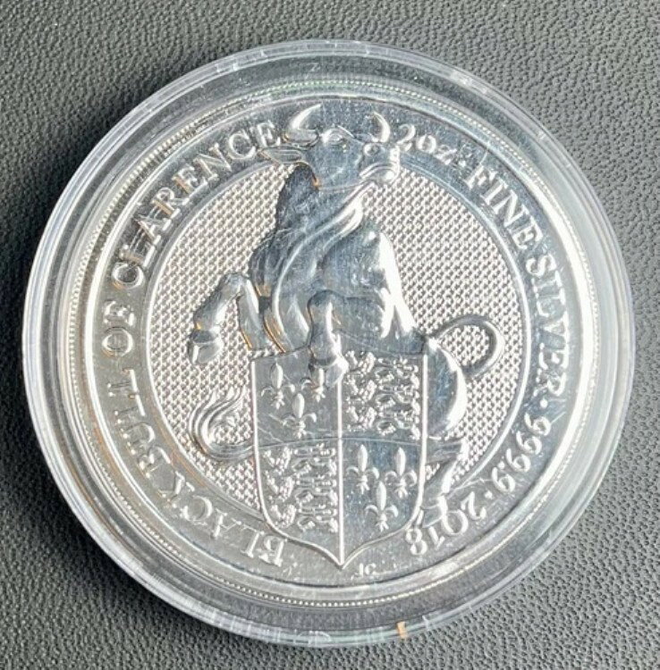 2018年 英国 2オンス シルバー クイーンズビースト ブラックブルオブクラレンス .9999 ファイン