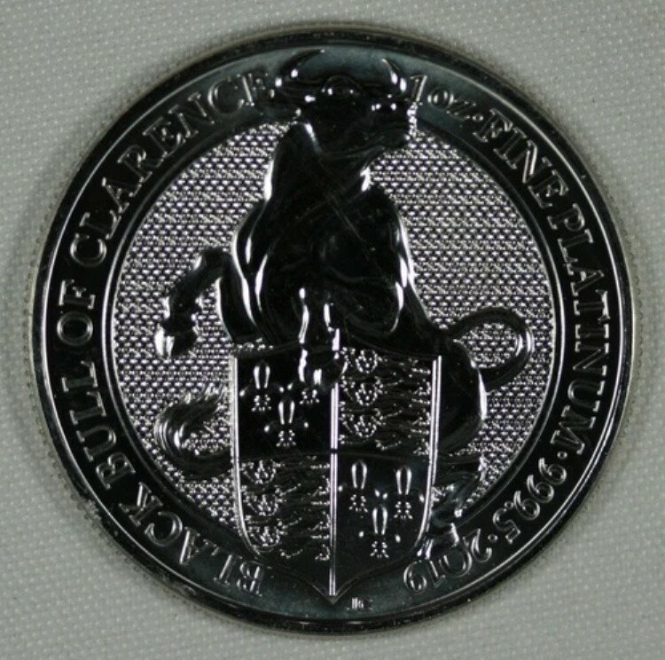2019年 英国 100ポンド 1オンス プラチナ 金貨。ブラック・ブル・オブ・クラレンス。