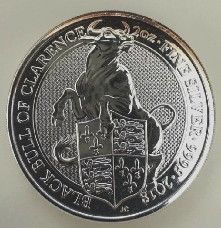 2018 クイーンズ ビースト シリーズ - ブラック ブル オブ クラレンス .9999 シルバー 2 オンス