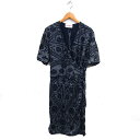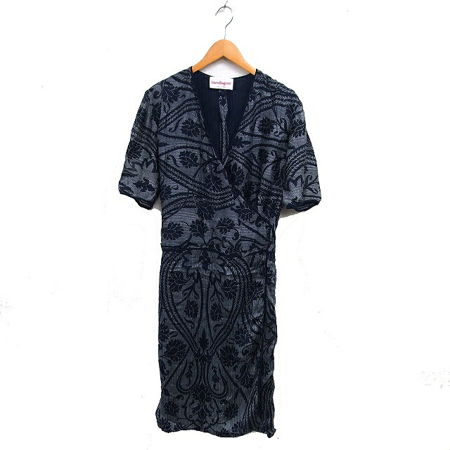 【中古】ラウラ ビアジョッティ Laura Biagiotti カシュクール ワンピース フレア ロング シルク 花柄 五分袖 46 紺 ネイビー /NT6 レディース 【ベクトル 古着】 251106